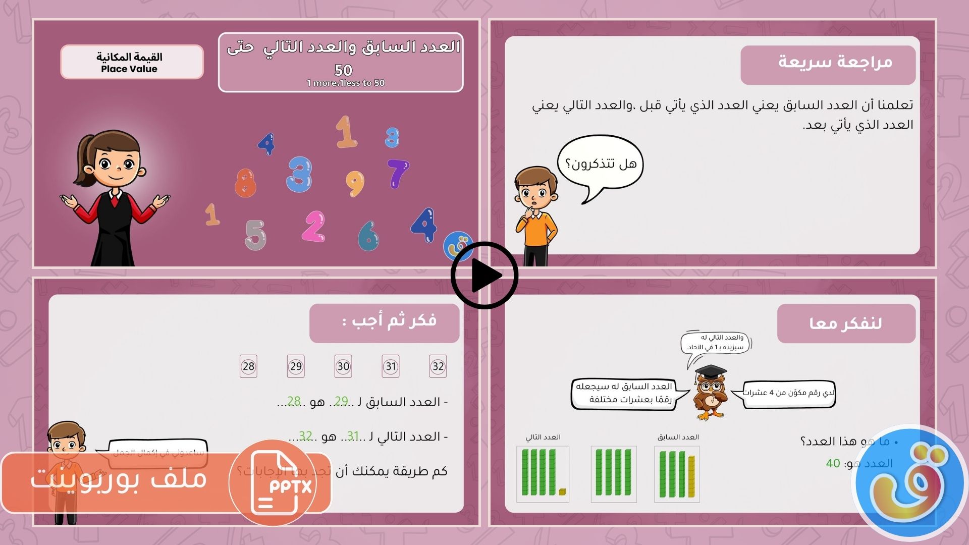 القيمة المكانية: العدد السابق والعدد التالي حتى 50 – بوربوينت العدد السابق والعدد التالي حتى 50