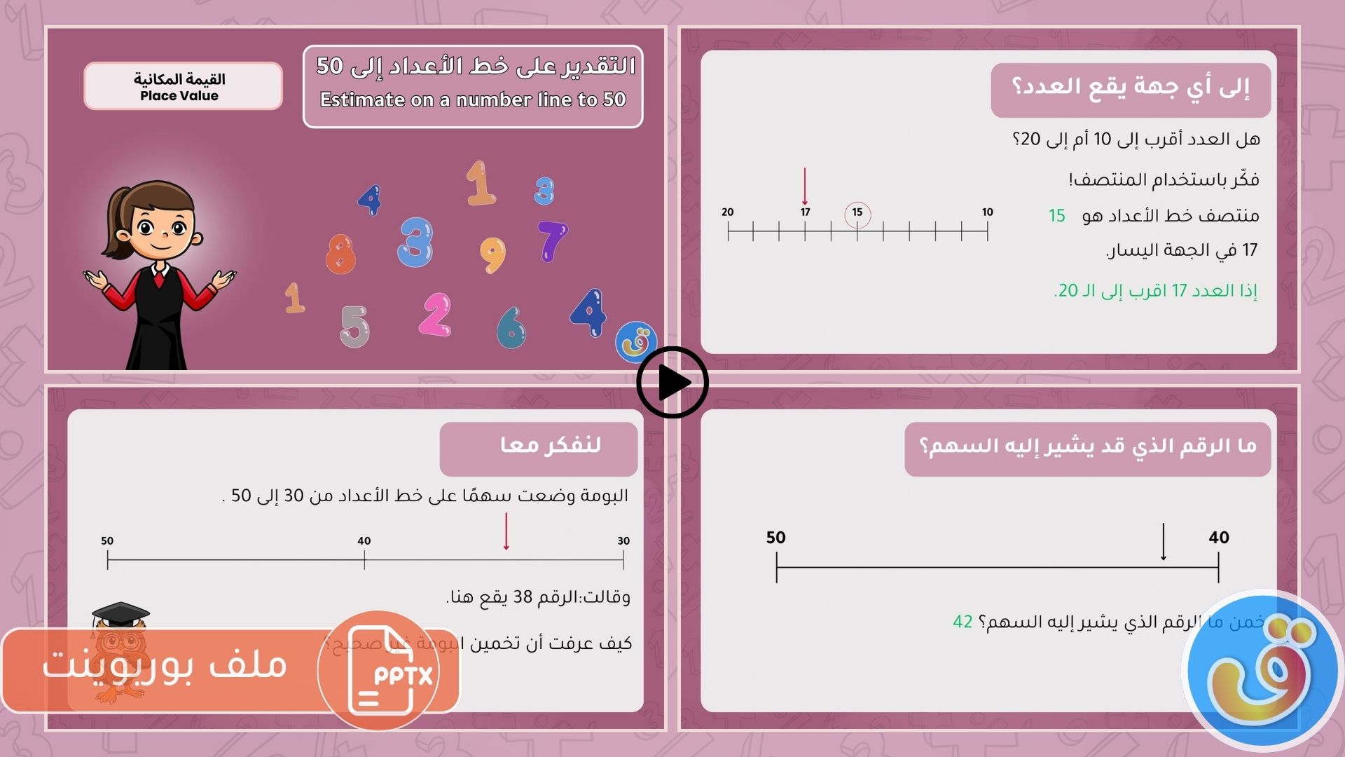 القيمة المكانية: التقدير على خط الأعداد إلى 50 – بوربوينت التقدير على خط الأعداد إلى 50