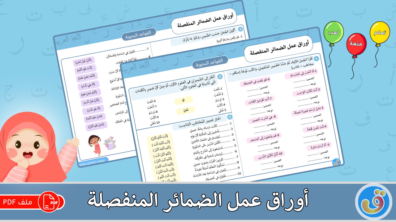 الضمائر المنفصلة موضوع مهم وأساسي، خصوصًا للأطفال في المراحل الابتدائية.